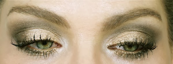A sombra pode ser só a dourada, ou pode ser acompanhada de um côncavo preto ou marrom. O delineador metálico é super bem vindo! E o lápis, ou a própria sombra, pode ser usada como um detalhe pra iluminar o canto interno dos olhos, bem como abaixo da linha d'água inferior, do meio para o canto interno.